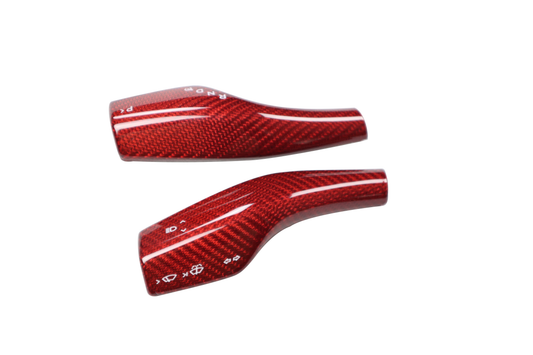 Red Dry Carbon Fiber Shift Stalk Covers 2 Pcs For Tesla Model 3 & Y 2017-2023