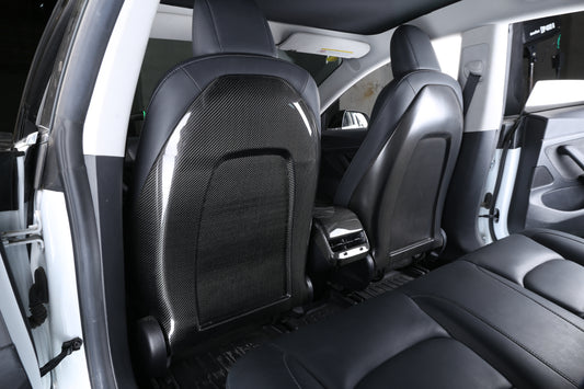 For Tesla Model 3 & Y Gloss Dry Carbon Fiber Seat Back Replacement Cover 2 Pcs 2017-2022