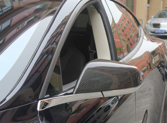 Gloss Dry Carbon Fiber Add On Type Mirror Cover For Tesla Model S 2012-2020
