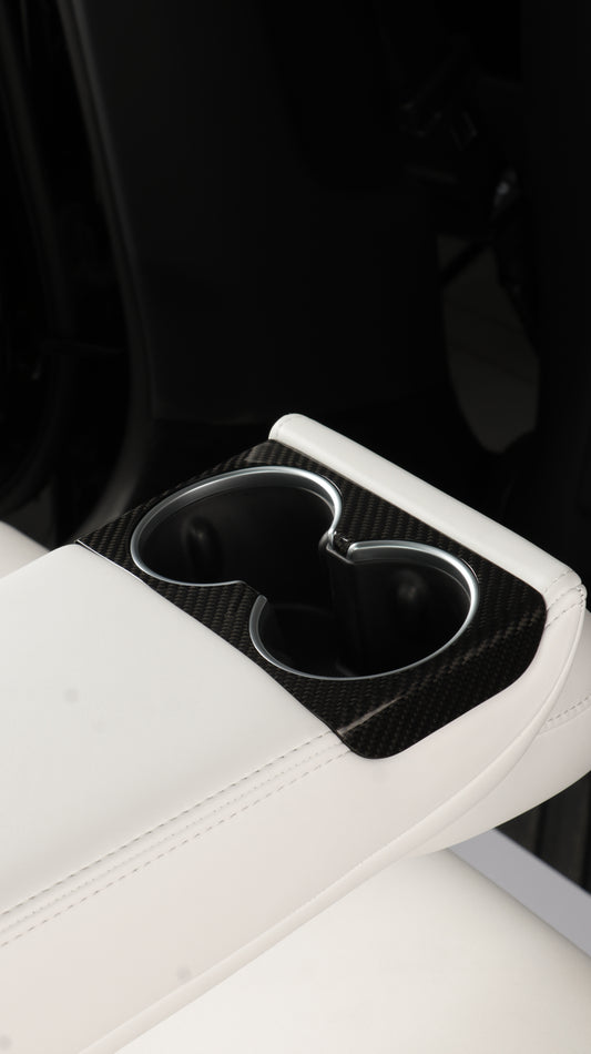 Gloss Dry Carbon Fiber Back Seat Cup Holder Cover For Tesla Highland Model 3 2023+