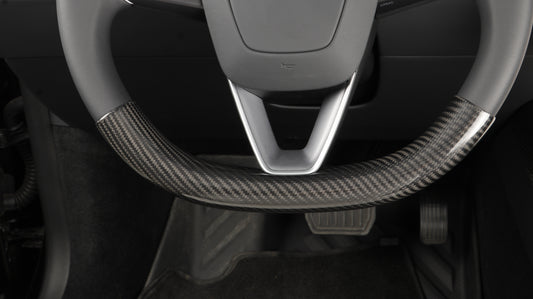 Gloss Dry Carbon Fiber Steering Wheel Trims For Tesla Highland Model 3 2023+