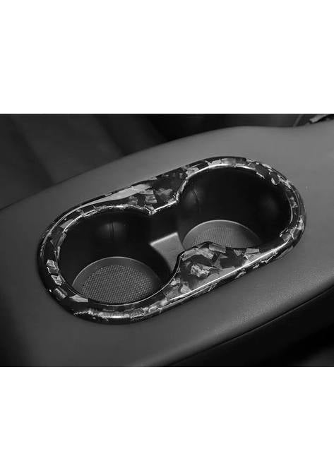 Gloss Forged Dry Carbon Fiber Rear Seat Cup Holder Cover For Tesla Model 3 2017-2023